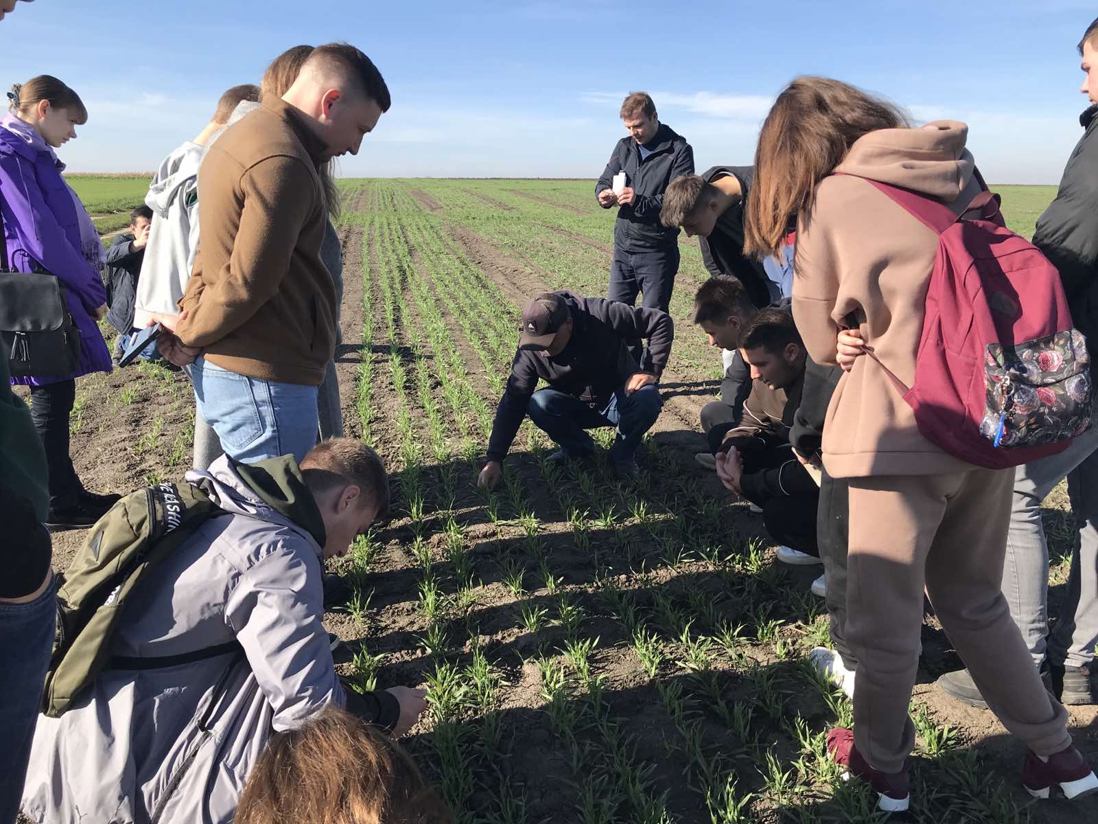 Студенти ознайомились з основними напрямками діяльності установи, провели оцінку стану посівів гороху озимого посівного, ріпаку озимого та озимих зернових (ячмінь, пшениця, жито, тритікале) щодо визначення фенологічних фаз росту і розвитку рослин, густоти посіву, вмісту хлорофілу в листках зернових культур за допомогою приладу N-tester фірми Jara Україна для експрес діагностики азотного живлення.