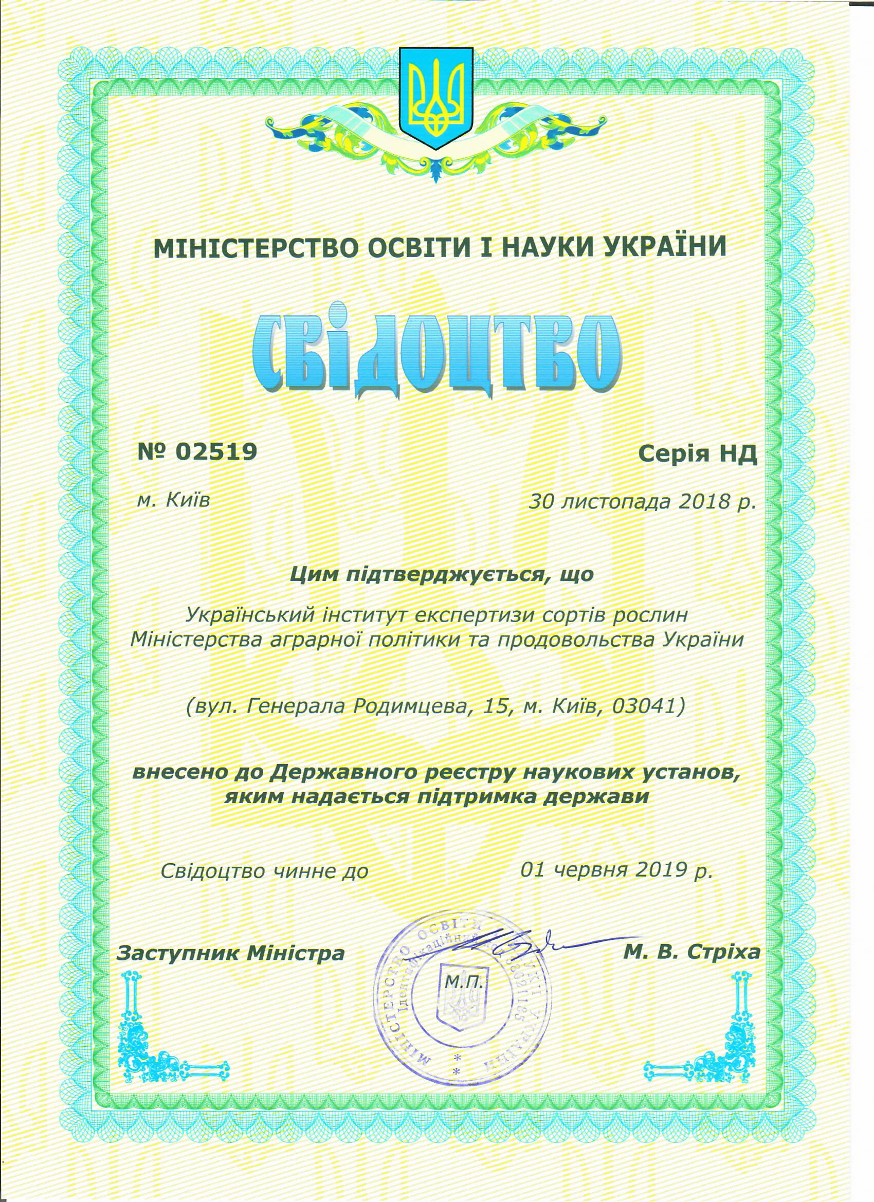 ПовернутисьУкраїнський інститут експертизи сортів рослин Міністерства аграрної політики та продовольства України (вул. Генерала Родимцева, 15, м. Київ, 03041) внесено до Державного реєстру наукових установ, яким надається підтримка держави.