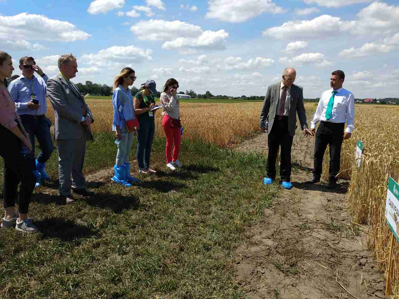 Програмою було також передбачено відвідування дослідних ділянок компанії ТОВ «ДСВ-Україна». В рамках огляду поля було презентовано різні сорти пшениці озимої та ріпаку озимого компанії DSV. Також в роботі був продемонстрований селекційний комбайн, який відразу ж, не відриваючись від процесу, в полі оцінює урожайність та вологість насіння. Цей комбайн може зібрати за добу 600-700 ділянок.