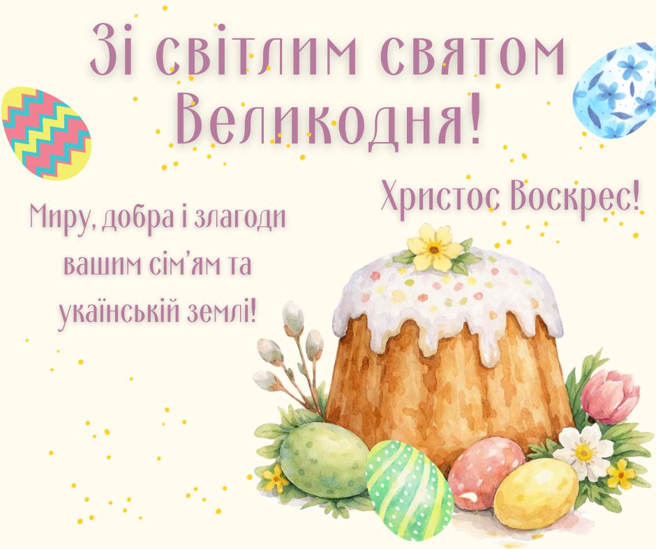 Щиро вітаємо вас зі світлим святом Великодня!