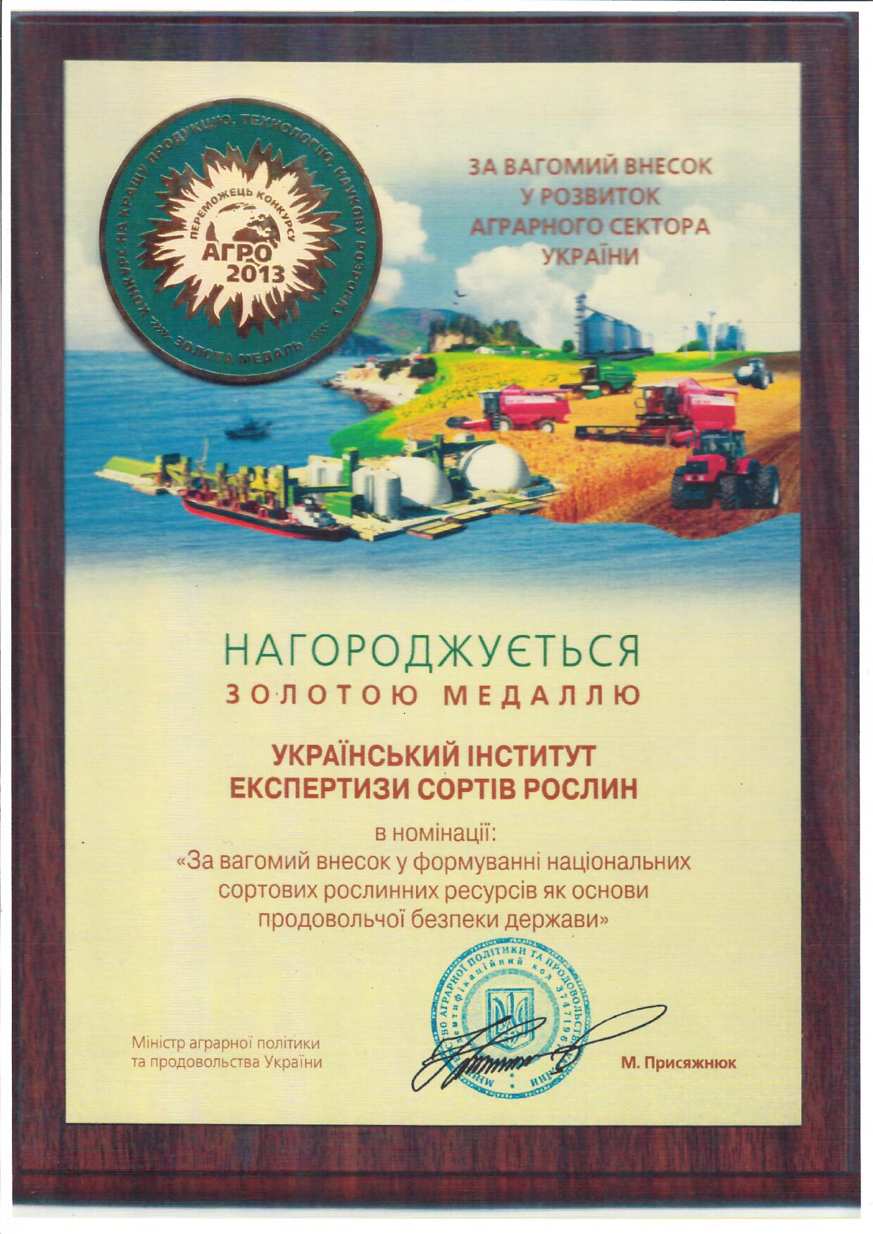 Participation of the UIPVE in the nationwide event in the agro-industrial complex of Ukraine ‑ XXIV International agro-industrial exhibition "AGRO-2013". For participation in the exhibition, the UIPVE was awarded a Diploma