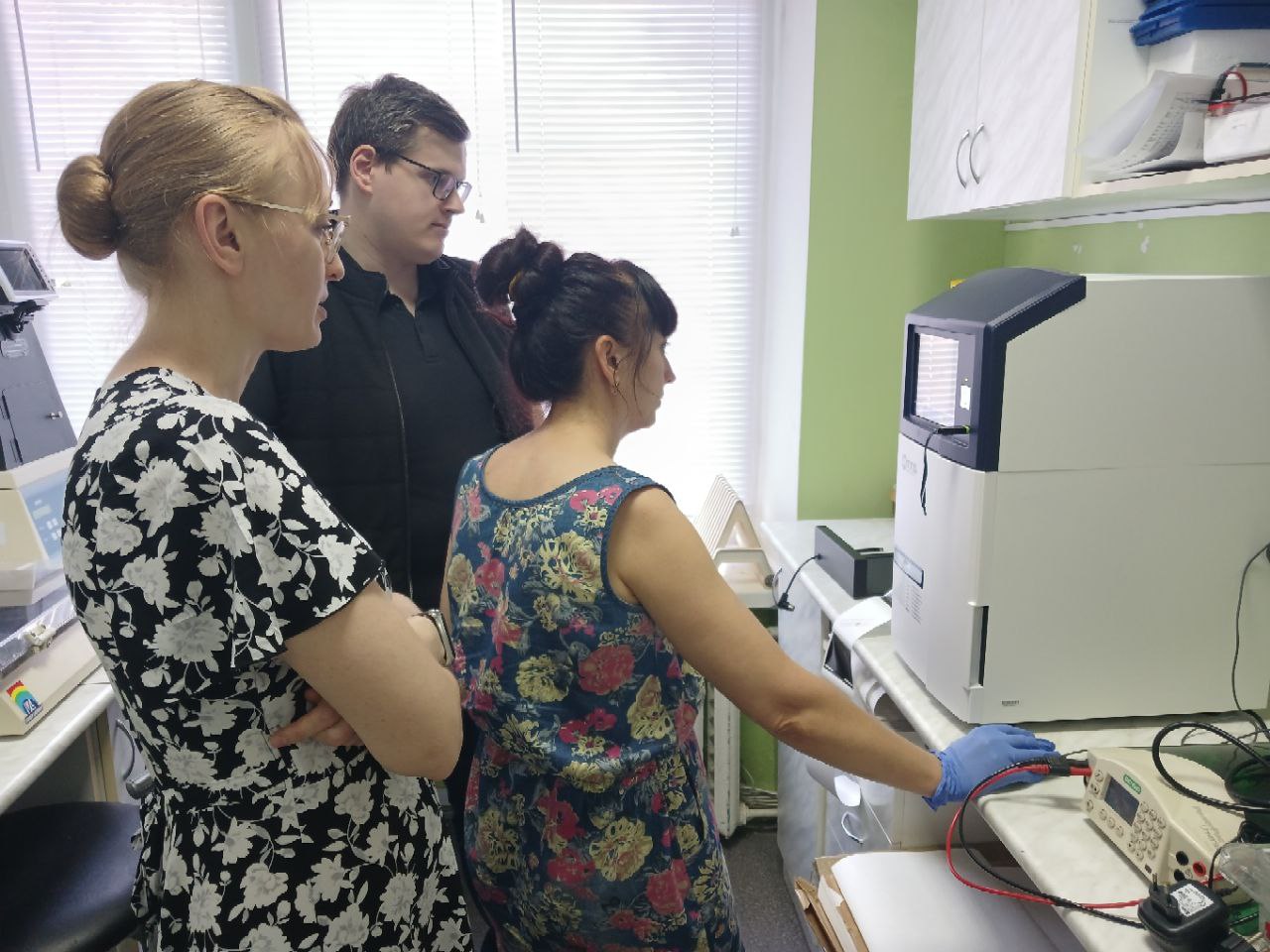 During the training employees of the Laboratory were got acquainted with user interface, software, settings of the Gel Documentation System. By the supervising of experienced and skillful engineer and methodologist Oleksii Fastivets of the company which represents the manufacturer in Ukraine, employees of the Laboratory mastered the skills of a photo documentation with different dyes under respective light types.