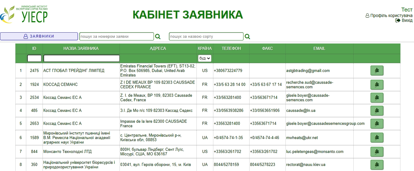 Для переходу до даної функції, необхідно на сторінці заявників (рис. 1) вибрати заявника по сортах якого необхідно сформувати рахунок.