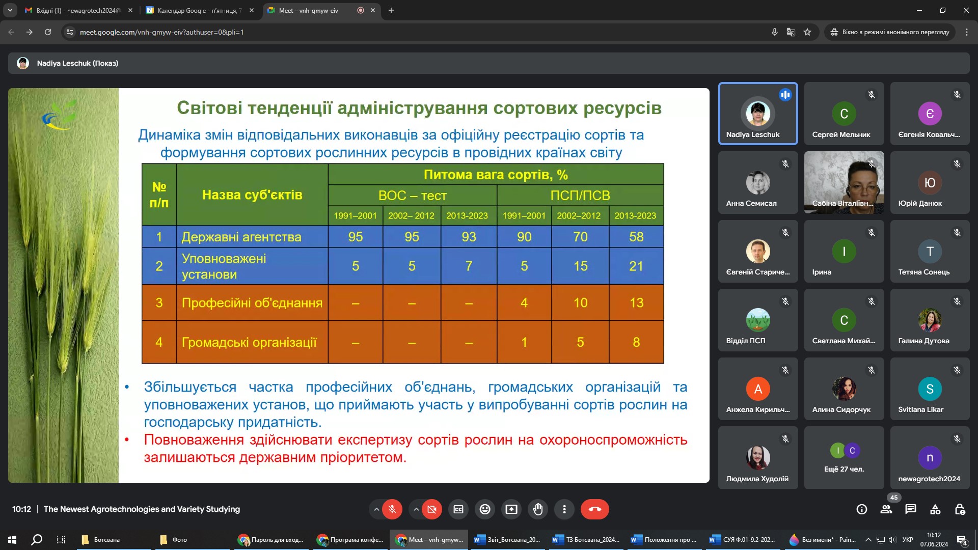 ‑ Лещук Надія Василівна, д-р с.-г. наук, с.н.с., Український інститут експертизи сортів рослин «Національні сортові рослинні ресурси: стан і перспективи»;