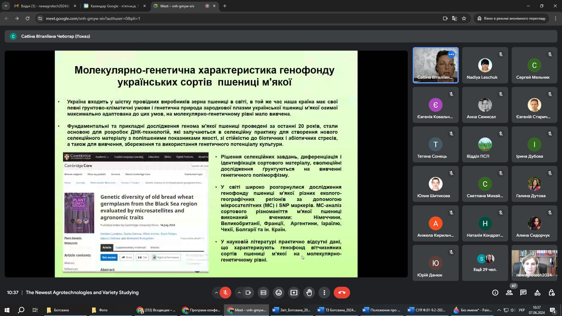‑ Чеботар Сабіна Віталіївна, д-р біол. наук, професор, член-кореспондент НААН України, Одеський національний університет імені І. І. Мечникова «Застосування молекулярних маркерів для вивчення генетичного різноманіття українських сортів пшениці м’якої»;
