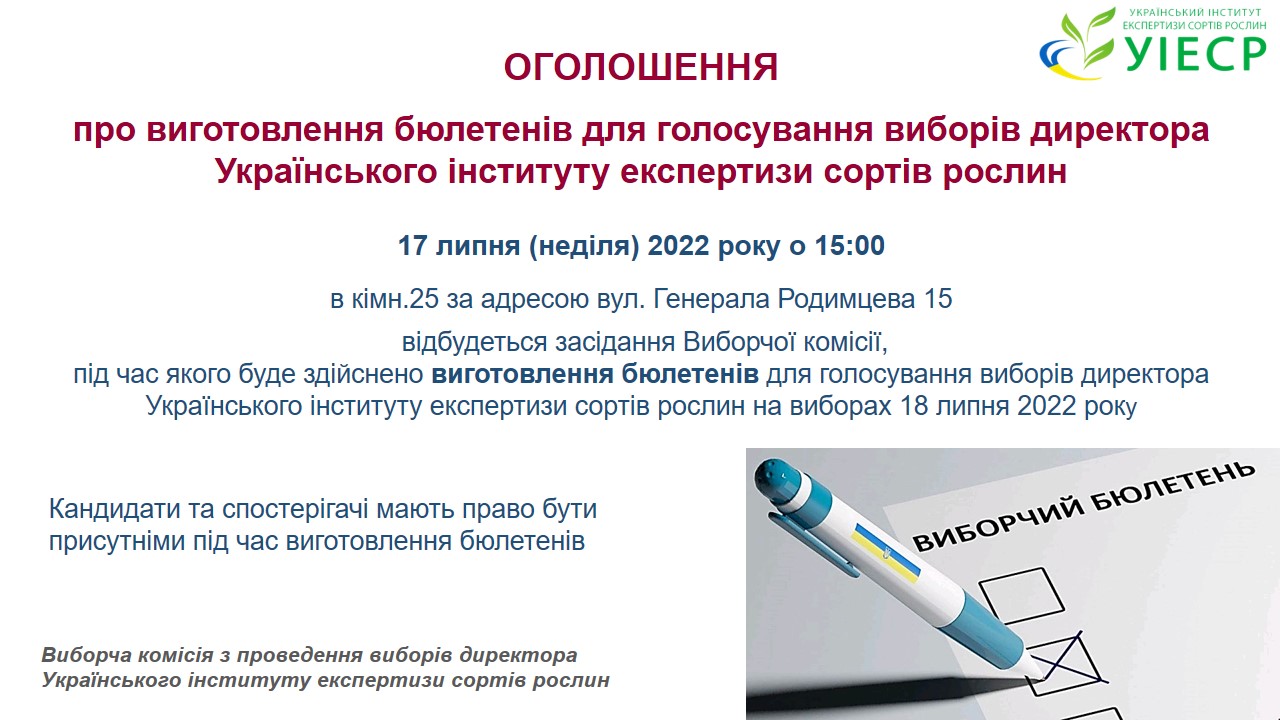 Оголошення про виготовлення бюлетенів для голосування виборів директора УІЕСР