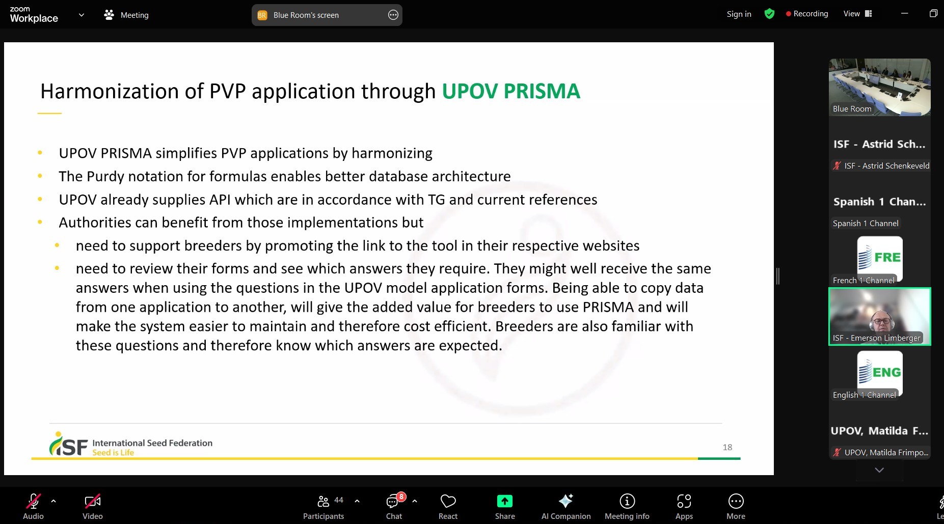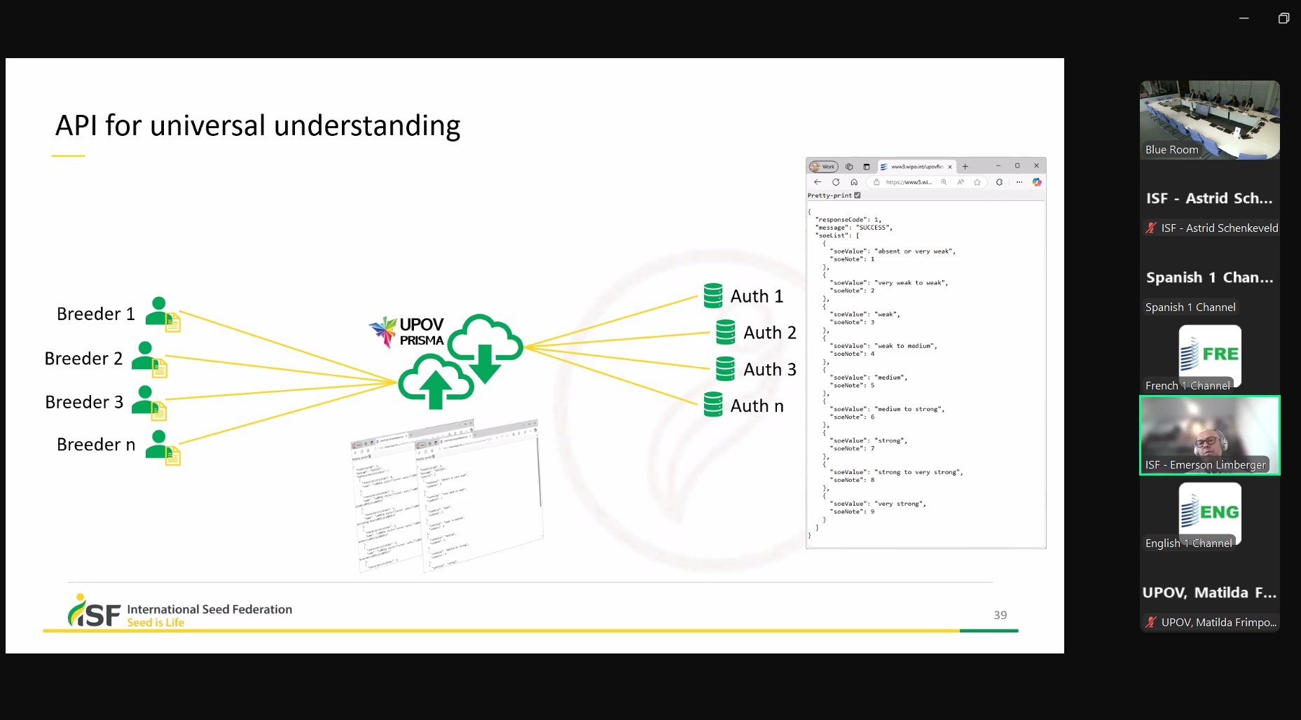 Повернутись17 березня 2025 року працівники УІЕСР взяли участь в 5-ому он-лайн засіданні UPOV щодо електронних заявок (EAM/5). Основною темою зустрічі був розвиток електронної системи охорони сортів рослин e-PVP.