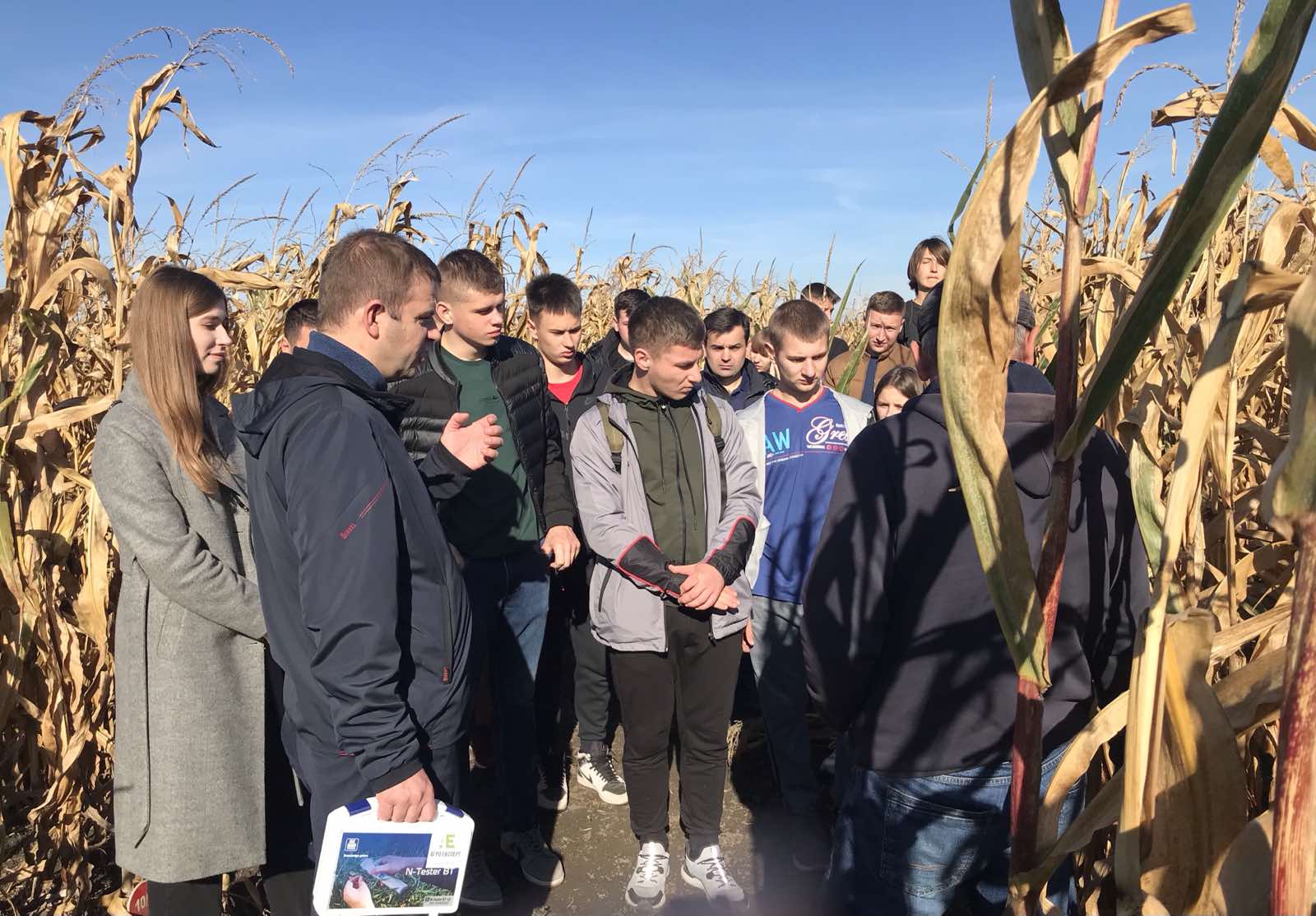 Студенти ознайомились з основними напрямками діяльності установи, провели оцінку стану посівів гороху озимого посівного, ріпаку озимого та озимих зернових (ячмінь, пшениця, жито, тритікале) щодо визначення фенологічних фаз росту і розвитку рослин, густоти посіву, вмісту хлорофілу в листках зернових культур за допомогою приладу N-tester фірми Jara Україна для експрес діагностики азотного живлення.