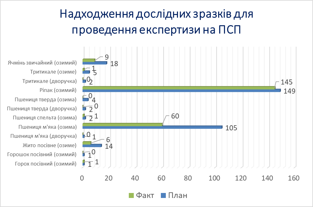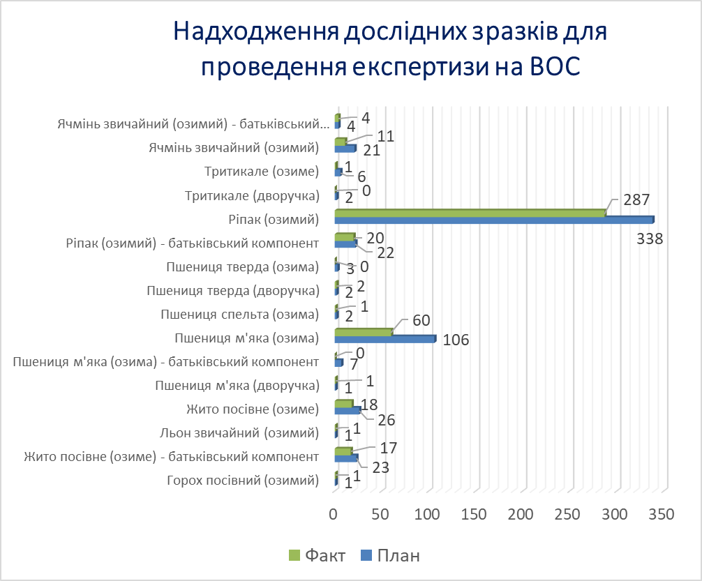 ПовернутисьІнформуємо, що станом на 19.08.2022 року, з метою проведення польових досліджень з кваліфікаційної експертизи сортів ботанічних таксонів озимого типу розвитку під урожай 2023 року на Білоцерківський відділ польових досліджень Київської спеціалізованої філії Українського інституту експертизи сортів рослин, надійшли дослідні зразки в кількості: