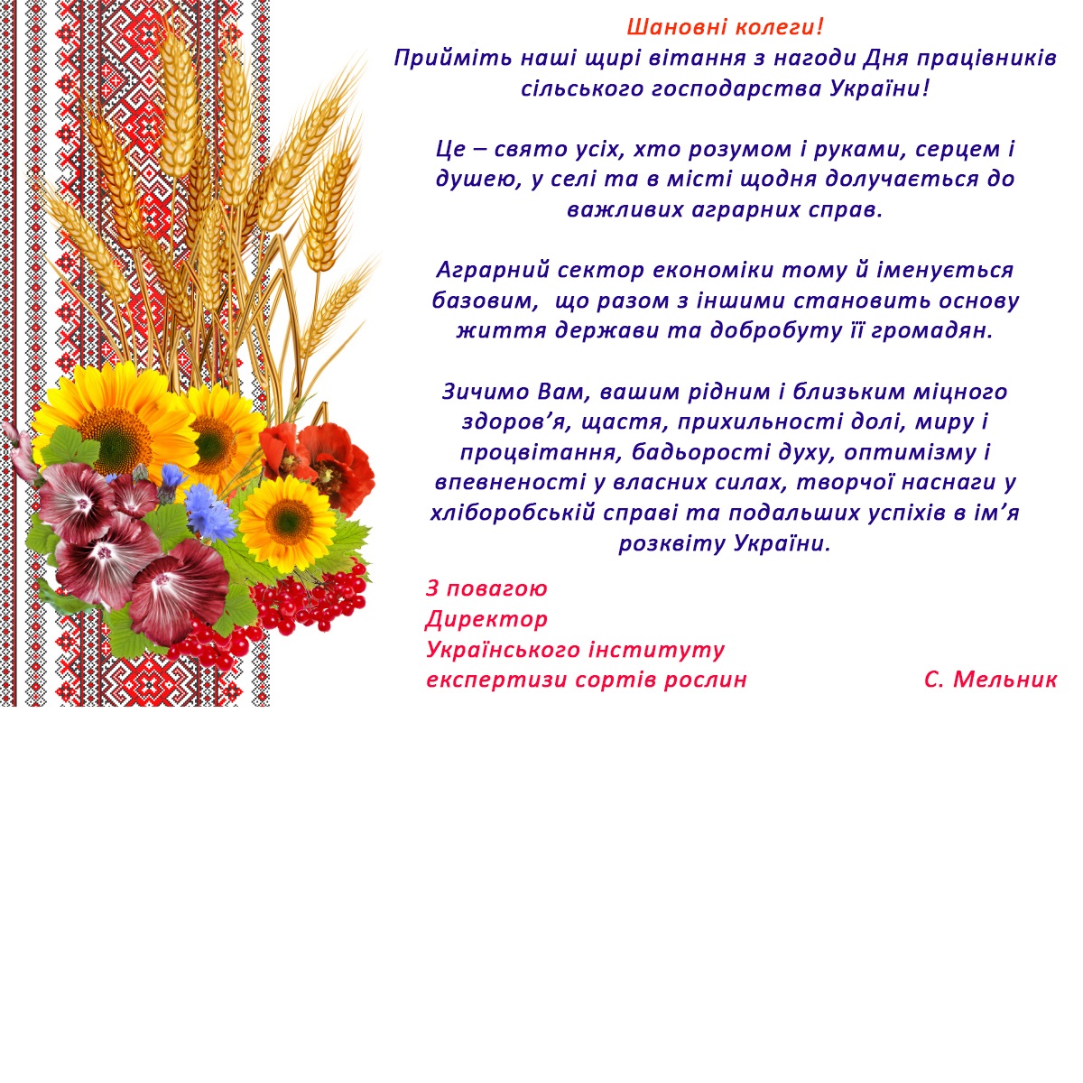 Щирі вітання з нагоди Дня працівників сільського господарства України!