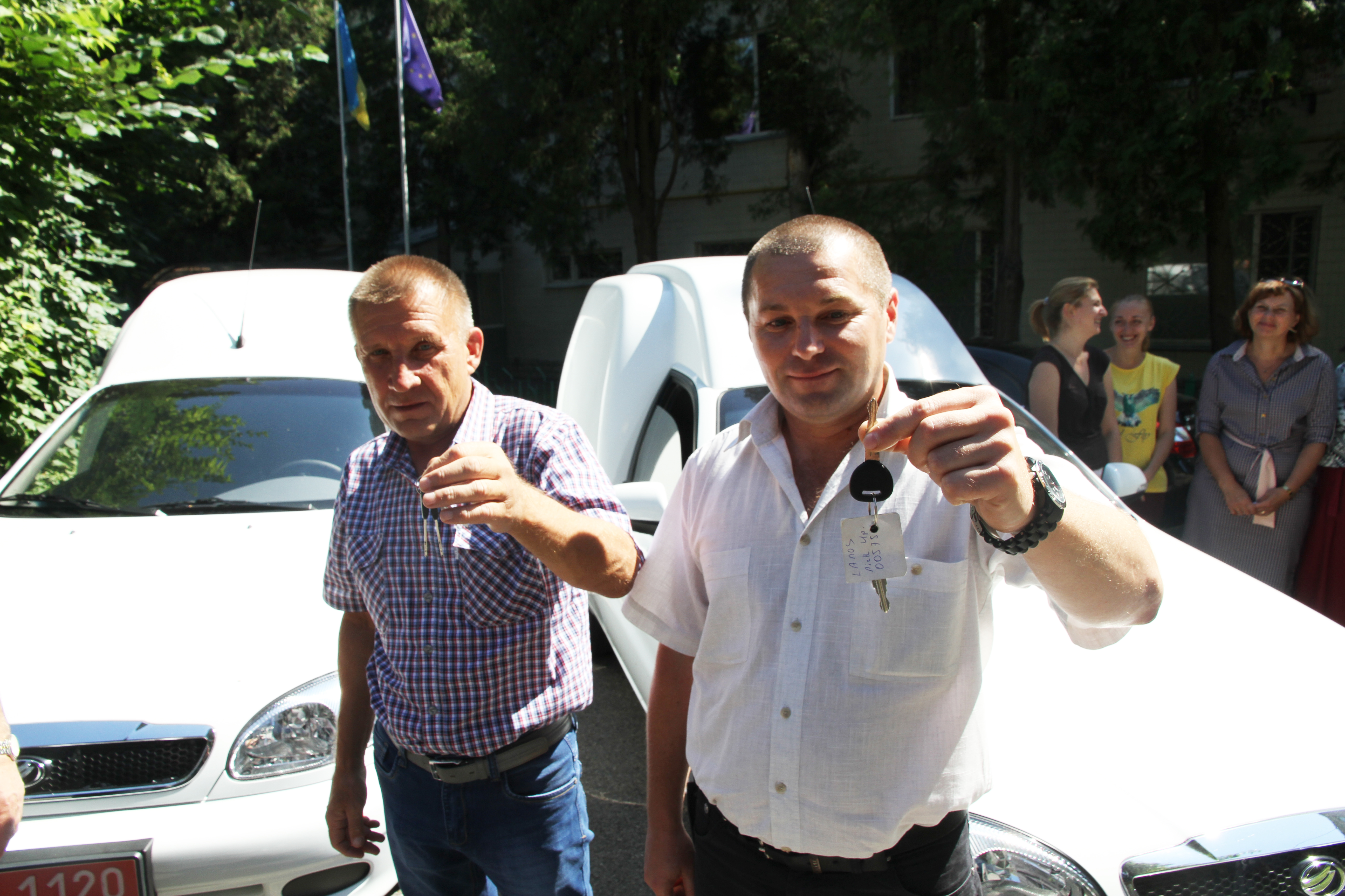 Перші два автомобілі 05 липня отримали Кіровоградська та Харківська філії УІЕСР. Директор Інституту Мельник С.І. разом із заступником директора Києнко З.Б. в присутності керівників відділів вручив ключі від нових автомобілів директору Кіровоградської філії УІЕСР Козаку С.В. та директору Харківської філії УІЕСР Болотову В.Ю.