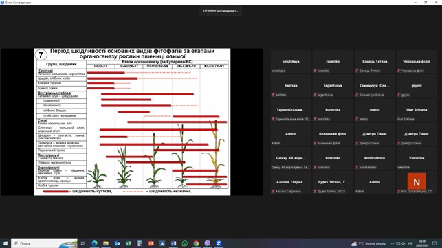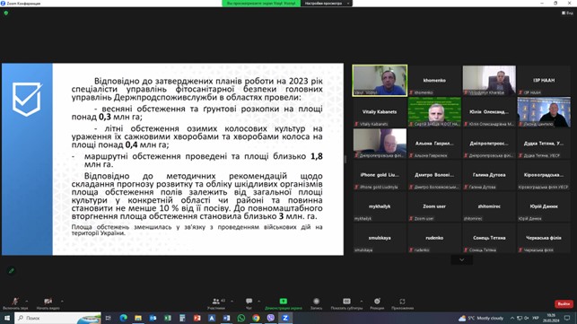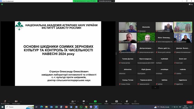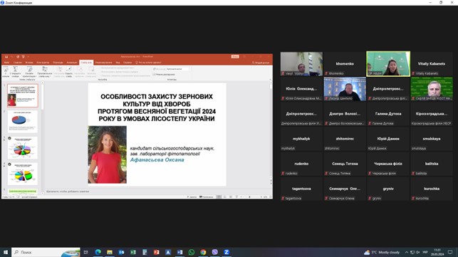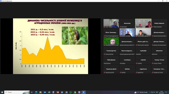 Під час проведення круглого столу обговорено проблеми із захисту зернових культур від шкідливих організмів у весняний період. Надано прогноз фітосанітарного стану агроценозів озимих і ярих зернових культур на поточний рік та рекомендації аграріям щодо своєчасного проведення захисних заходів.
