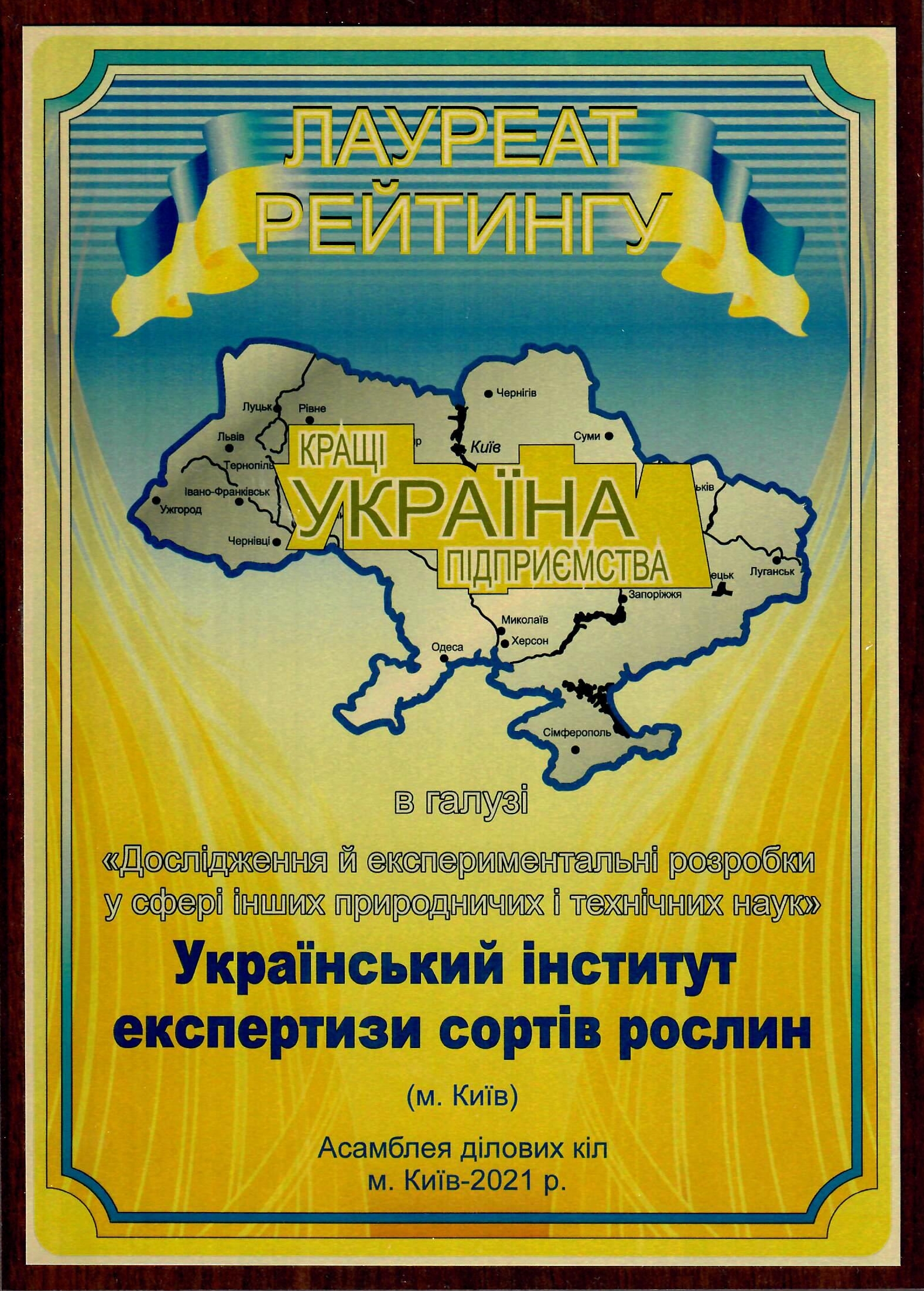 ПовернутисьУкраїнський інститут експертизи сортів рослин став Лауреатом рейтингу кращі підприємства України в галузі «Дослідження й експериментальні розробки у сфері інших природничих і технічних наук».