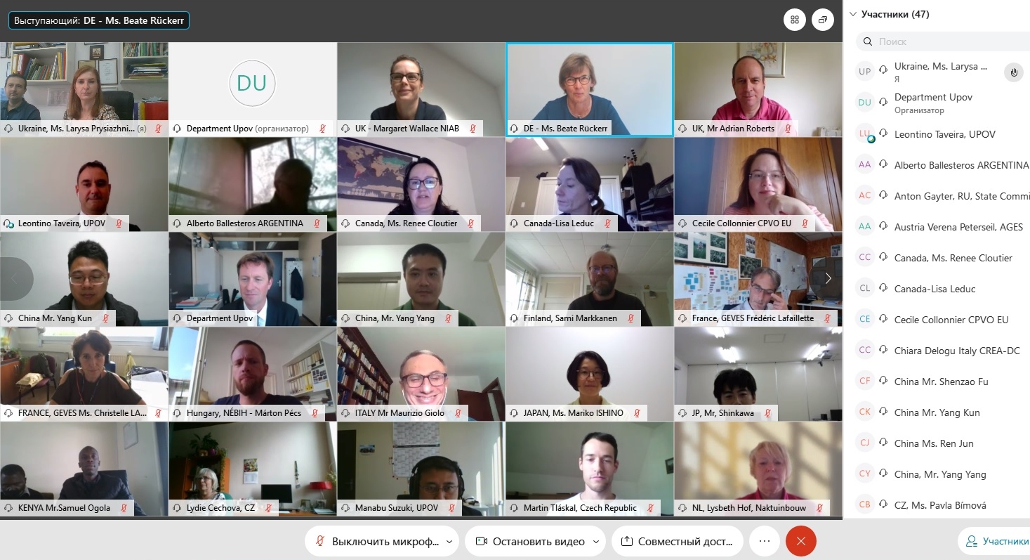 ПовернутисьСпівробітники Українського інституту експертизи сортів рослин завідувач лабораторії молекулярно-генетичного аналізу Присяжнюк Лариса Михайлівна та завідувач відділу науково-технічної інформації Стариченко Євгеній Михайлович прийняли дистанційно участь у засіданні робочих груп Міжнародного союзу з охорони нових сорті рослин (UPOV) з Автоматизації та Комп’ютерних програм UPOV (Technical Working Party on Automation and Computer Programs (TWC/38 Session)) і Біохімічні та молекулярні методи, зокрема ДНК-профілювання (Working Group on Biochemical and Molecular Techniques, and DNA-profiling in particular (BMT/19 Session)), які проходили 21-25 вересня 2020 року.