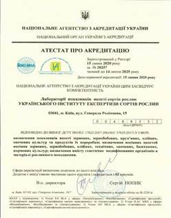 Лабораторія акредитована на відповідність вимогам ДСТУ ISO/IEC 17025:2017 «Загальні вимоги до компетентності випробувальних та калібрувальних лабораторій», Національним агентством з акредитації України, атестат про акредитацію № 20257 від 15 липня 2020 року.